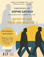 Séminaire clinique avec Sophie GAYARD précédé d’une matinée « Lire Lacan à plusieurs » en présence de l’invitée