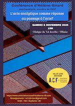 En mars 2025, la série britannique Adolescence a rencontré un succès phénoménal en dépassant les cent millions de vues en quelques semaines. L’histoire d’un adolescent de treize ans, accusé d’avoir poignardé à mort une jeune fille de son âge fascine. Idem pour les faits divers dans les journaux, avec à chaque fois une question qui reste sans réponse : qu’est-ce qui a bien pu conduire à ce passage à l’acte ? Dans la pratique, particulièrement auprès des adolescents, nous rencontrons régulièrement des sujets qui se présentent dans une forme d’urgence subjective où la parole est court-circuitée, au profit du passage à l’acte. Dans ce contexte, la priorité du clinicien est d’essayer de renouer avec les usages de la parole, faut-il encore pour cela supporter le transfert. D’une certaine façon, on peut avancer que l’acte psychanalytique se présente comme réponse au passage à l’acte. Dans les deux cas, que ce soit du côté du sujet ou du praticien, on parle d’acte. Quel rapprochement peut-on faire entre l’acte psychanalytique et le passage à l’acte ? En quoi la notion d’acte intéresse la psychanalyse ? En quoi est-ce une boussole pour le clinicien dans sa pratique ? Voici quelques questions que nous proposons de mettre au travail.